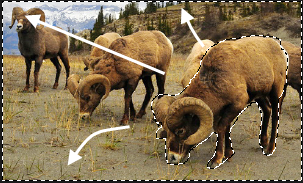 [範囲選択] ツールを使用して、画像全体ではなく、画像のある特定領域だけを選択して、その領域だけに編集やフィルタを適用することができます。