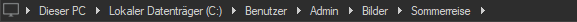 Die Inhaltsleiste befindet sich oben im Dateilistenfenster und zeigt an, was Sie gerade durchsuchen. Bei Verwendung des Ordnerfensters zeigt die Inhaltsleiste den Pfad oder die Pfade zu den betrachteten Ordnern an, wie folgendes Beispiel verdeutlicht: