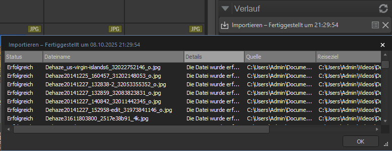 im Verlauf an. - Dateiname: Zeigt den Dateinamen der Quelldatei an.