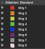 So weisen Sie Farbetiketten anhand von Tastaturkurzbefehlen zu: