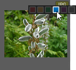Sobald Sie Farbetiketten-Gruppen erstellt haben, können Sie im Katalogfenster auf sie zugreifen, indem Sie auf die Schaltfläche für die Etiketten-Einstellungen klicken und die Gruppe aus der Dropdownliste auswählen. Ehe Sie ein Farbetikett zuweisen, achten Sie darauf, dass das die vorgesehene Etiketten-Gruppe aktiv ist. Der Name den aktiven Etiketten-Gruppe wird in Klammern in der Etiketten-Kopfzeile angezeigt.
