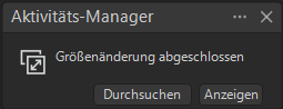Benachrichtigungen des Aktivitätsmanagers werden in der unteren rechten Ecke des Bildschirms angezeigt, wenn Aktivitäten angestellt oder abgeschlossen sind.