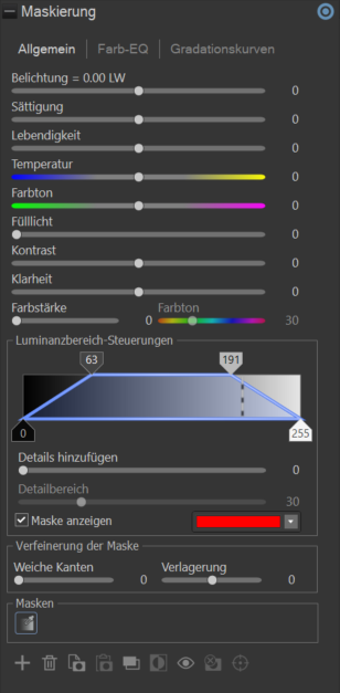 wird in der Maskierungsgruppe der Registerkarten Stimmung und Detail angezeigt.