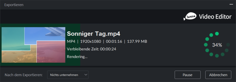 Der Export von Videos in 4K oder benutzerdefinierten Auflösungen ist nur in LUXEA Pro Video Editor verfügbar.