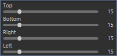 Opens a fly-out of advanced size controls. Use the sliders, up- and down-arrow keys, or type in a number, to set the size of each side of the border individually. For example, you can set the bottom border to be larger to include a space for copyright information. Click on the arrow beside the Size slider to open the advanced size controls menu. |