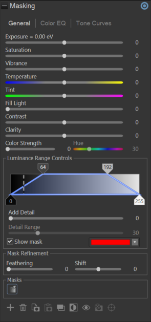 - In Develop mode, in the Tune or Detail tab, click Masking, then Luminance Range