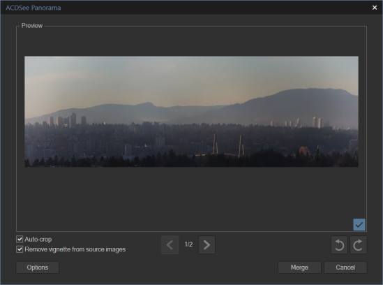 Once the Panorama preview image is generated, you can apply Auto-Crop or Remove Vignette:
