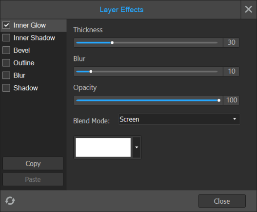 - Configure the desired layer effects settings in the Layer Effects dialog.