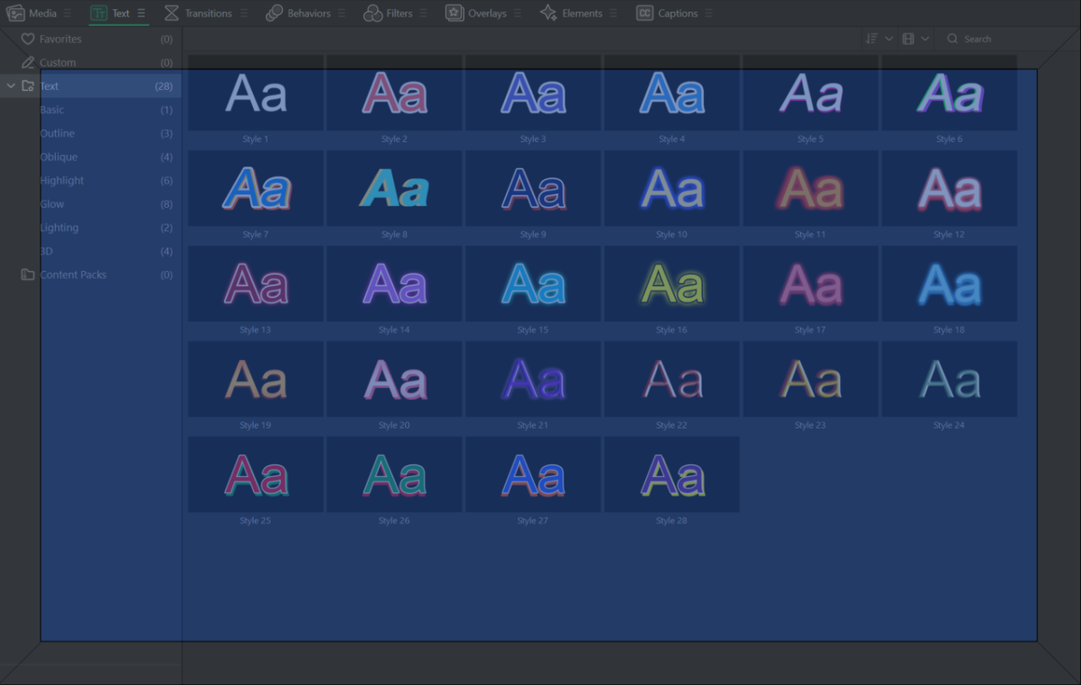 When in the Media panel, the top right corner of the window has a Search bar. Use the search bar to quickly narrow down your options based on search criteria.