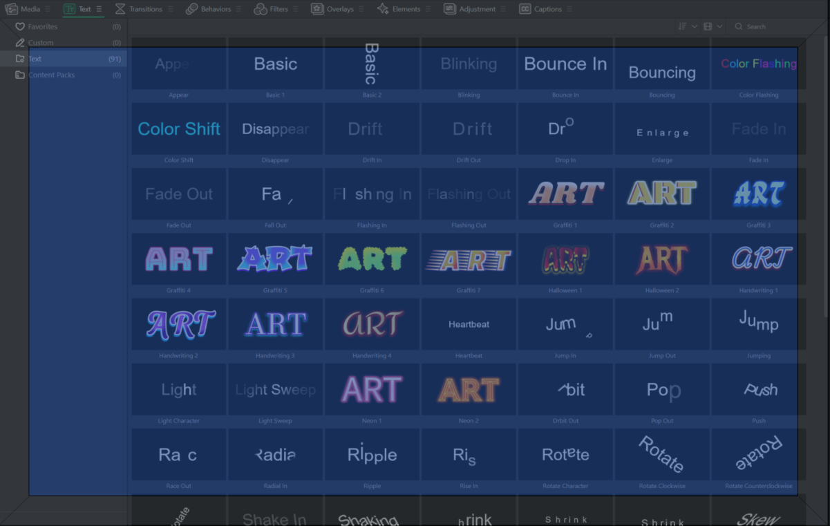 When in the Media panel, the top right corner of the window has a Search bar. Use the search bar to quickly narrow down your options based on search criteria.