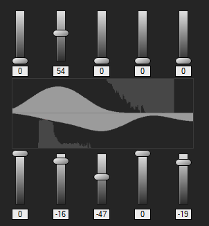 To the right: Increases the intensity of the darkening across all areas of the image. The height of the bottom curve increases. To the left: Reduces the intensity of the darkening and the height of the curve. |
