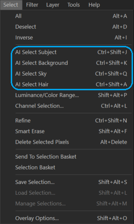 Click Select | AI Select Sky or press Ctrl + Shift + Q.
