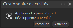 Les notifications du Gestionnaire d’activités apparaissent en bas à droite de l’écran lorsque des activités sont en file d’attente et terminées.