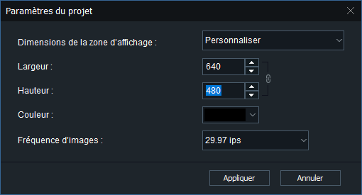 Pour configurer les paramètres de la zone d’affichage de votre projet et de la production vidéo qui en résulte, effectuez l’une des opérations suivantes :