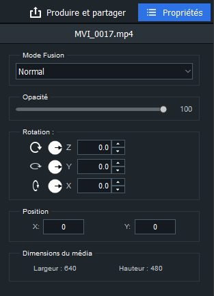 Entrez une valeur dans les champs X et/ou Y ou faites glisser le clip sur la zone d’affichage pour modifier sa position. |