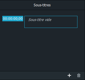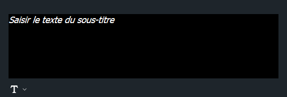 Ou appuyez sur Maj + C. Le sous-titre sera ajouté sur la chronologie au niveau de la tête de lecture. - Dans le champ situé sous la zone d’affichage, saisissez le texte à ajouter.