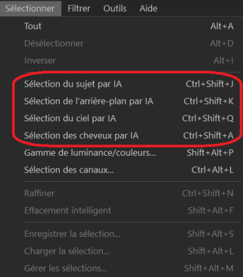 Pour utiliser une sélection enregistrée, cliquez sur Sélectionner | Charger la sélection....