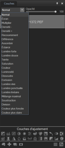 - Sélectionnez un Mode de fusion dans la liste déroulante en haut du volet Couches.
