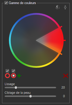 Ciblage des tons chair   L’utilisation du curseur Ciblage des tons chair désactive le reste des champs Plage de couleurs et ne permet le ciblage que des tons chair.