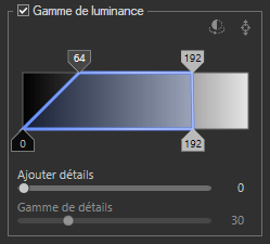 Le jeu de champs Plage de luminances est utilisé pour cibler les tons de luminosité à ajuster. Activez la case à cocher Plage de luminances pour activer la fonctionnalité associée.