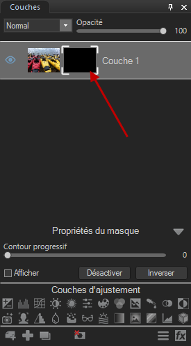 • Aller à Calque | Masque | Définir Masque Blanc ou Définir Masque Noir.