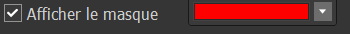 Si vous cochez cette case, le masque de gradient radial s'affiche dans la couleur sélectionnée. Vous pouvez aussi afficher le masque en maintenant enfoncée la touche S sur votre clavier. Cliquez sur la flèche de liste déroulante pour sélectionner une autre couleur d'affichage. |