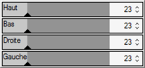 Ouvre un menu de commandes de taille avancées. Utilisez les curseurs, les touches de flèche vers le haut et vers le bas, ou saisissez un chiffre pour définir la taille de chaque côté de la bordure. Par exemple, vous pouvez donner à la bordure inférieure une plus grande taille afin d’y inclure un espace pour les informations de droits d’auteur. Cliquez sur la flèche à côté du curseur Taille pour ouvrir le menu des commandes de taille avancées. |