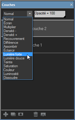 Pour changer le mode Fusion d'une couche et son Opacité :