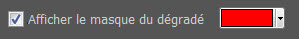 Si vous cochez cette case, le masque de dégradé radial s'affiche dans la couleur sélectionnée. Vous pouvez aussi afficher le masque en maintenant enfoncée la touche S sur votre clavier. Cliquez sur la flèche déroulante pour sélectionner une autre couleur d'affichage. |