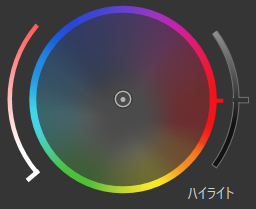 ターゲットポイントをホイールの外側に移動すると彩度が上がり、ホイールの内側に移動すると彩度が下がります。