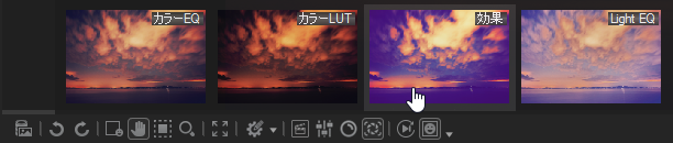 [表示] モードでは、画像と、その画像に保存されたすべてのスナップショットを閲覧できます。自動レンズと同じように、適用を確定することなく閲覧できます。