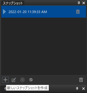 - [新規スナップショット] ダイアログでスナップショットの名前を入力し、[OK] を押します。保存したスナップショットがスナップショットペインに一覧表示されます。