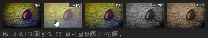 - フィルムストリップまたは[前へ]/[次へ]ボタンで、選択したフィルタが適用された他の画像もプレビューできます。