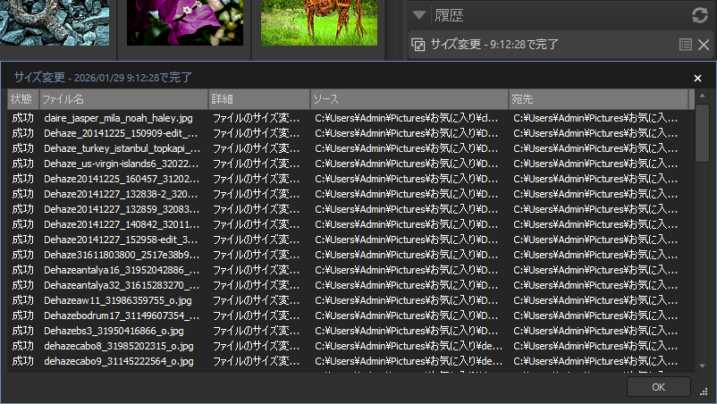 • スキップ: アクションは完了しましたが、他で使用中であるなどの理由で1つ以上のファイルがスキップされました。