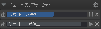インポートやその他の実行中のアクティビティは、アクティビティマネージャーキュー内のアクティビティ セクションで確認できます。