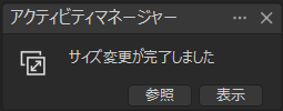 アクティビティがキューに入れられたときや完了したとき、アクティビティマネージャーの通知が画面の右下に表示されます。