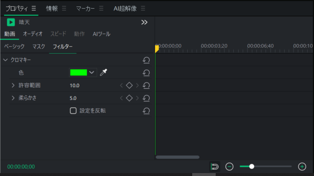 The Chroma Key, Color LUTs, Replace Color, Color Pass, and Mosaic filters are also available from the Advanced button on the Timeline toolbar. For more see Advanced Effects.