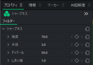 - In the Properties panel, click on the Filters tab. This will display the settings for all Filters associated with the Media Asset.