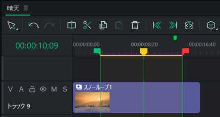 - Use the red and green selectors to select the area of a clip to be removed.