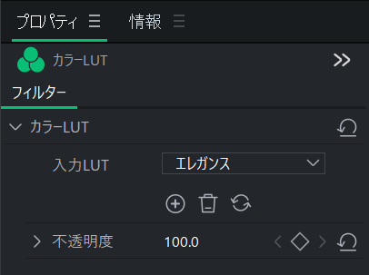 - With the clip still selected, in the Color LUTs section of the Properties panel, do one of the following: