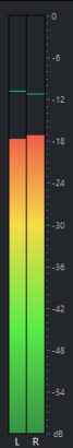 When viewing media within your project, an audio meter will display the current left and right channel levels in the bottom right of the program. This can be toggled on or off by