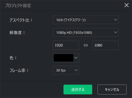 Sets the aspect ratio of the project. Aspect ratio is the proportional relationship between the height and width of a Media Asset. |