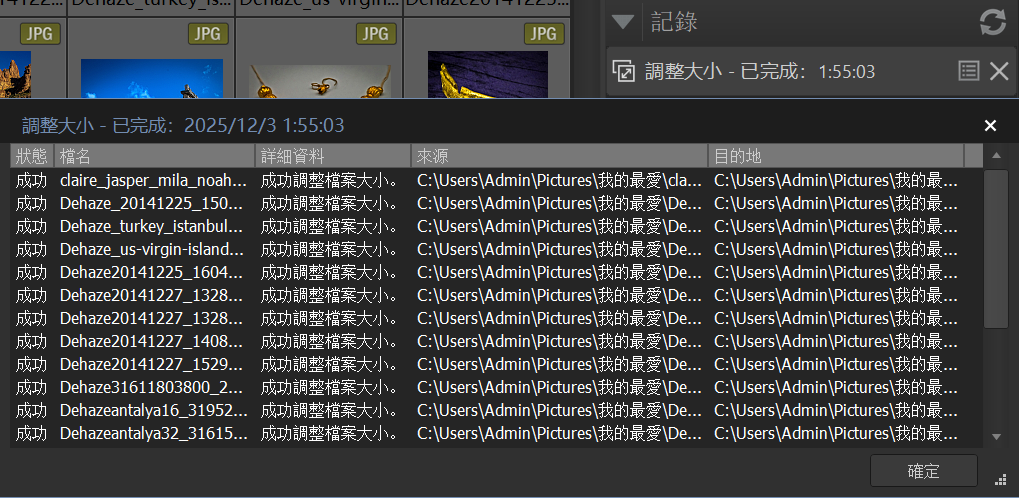 完成的 作業 可在 歷史紀錄 區段查看,每個 作業 完成的檔案列表。詳情請參閱 歷史紀錄。