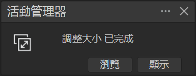 當作業排程或完成時,活動管理器通知會出現在畫面右下角。