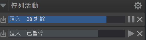 處於 等待中 狀態時,隨著檔案加入排程,剩餘資產數量會增加。此狀態通常在瀏覽、編目或匯入檔案時出現。